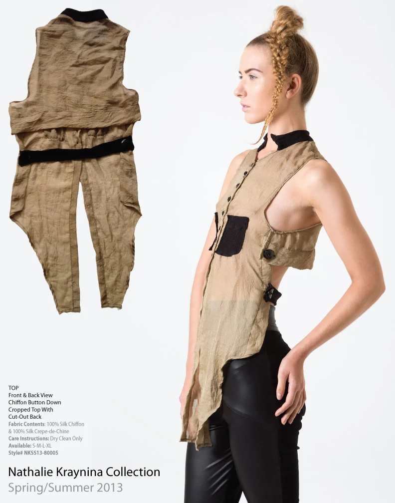 We are happy to introduce the new Nathalie Kraynina Spring/Summer 2013 Collection available for sale right now! This season Nathalie Kraynina’ collection is all about reinventing BLACK. Forever in vogue and very New York black looks great on everyone. The new line consists of interchangeable separates that can be worn together or can be added to any of your existing pieces. Think of your “little black dress” taken to a whole collection. Nathalie Kraynina imagined an effortless summer line that plays with textures and silhouettes. She used easy fabrics like stretch denim and cotton and dress them up with leather, silk brocades, and embroidered some pieces with stones and jewels. Even though the whole collection is all black it has touches of silver metallics. The new S/S 2013 collection has an air of elegance and sophistication yet exhumes playfulness and life.
